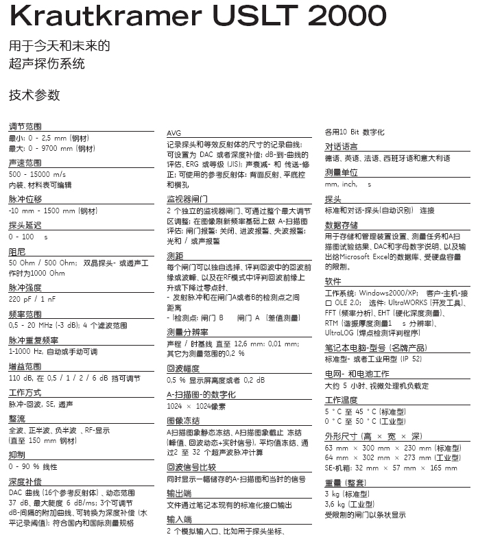 USLT 2000是一款基于通用PC平台对话式操作的超声仪器,具备卓越的超声检测特性,宽广的频率范围(0.5-20MHz)以及两个缺陷闸门。USLT 2000以高达635×400象素的分辨率和高速刷新频率在PC的显示器上呈现准模拟特性的A扫描图像。它还采用数据库技术来存储仪器设置、测试结果或完整的测试顺序等数据。 |