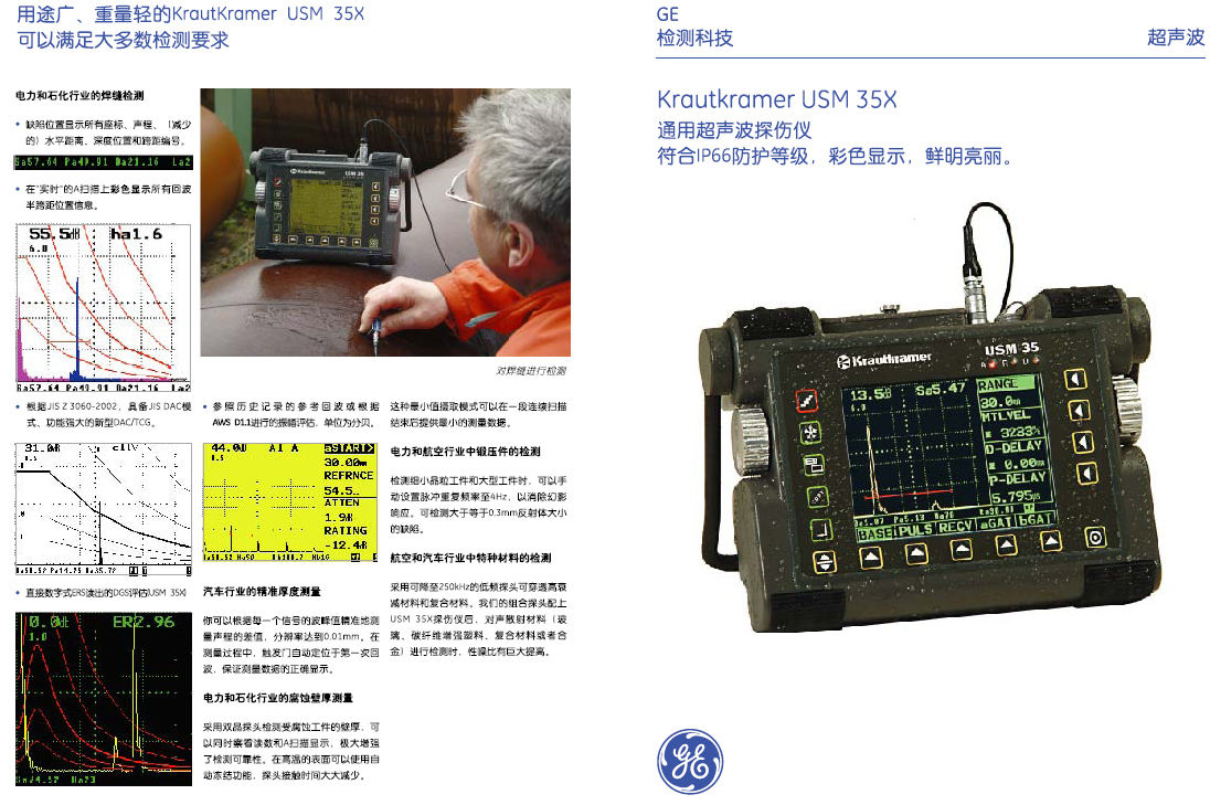 最新款USM 35X便携式超声探伤仪符合IP66防护标准,能够彻底隔绝灰尘进入,达到高压喷射水防护级别。内含符合日本焊接检测标准的最新软件。