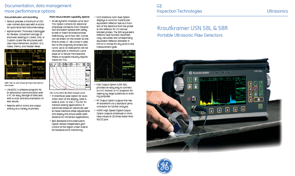 USN 58L是一款便携式超声探伤仪,它所配备的彩色穿透反射式液晶显示屏支持快达60Hz的刷新频率,能够在阳光直接照射环境下观测。USN 58L可取代被广为应用的USN 50L和52L探伤仪,并将USN仪器家族推向性能,可靠性和质量的顶峰。